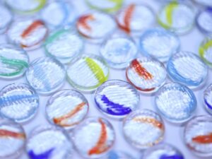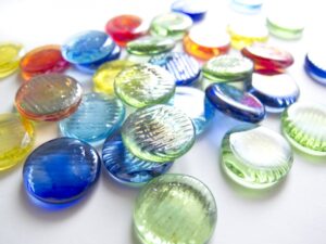 おはじきに一つ一つさわって正確に数えられるようなら、次はおはじきに触らないで、目で見て数えるようにしてみましょう。